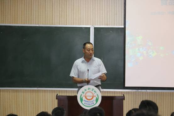 陕西省食药监局副巡视员王志宏向学生宣传食品安全知识。
