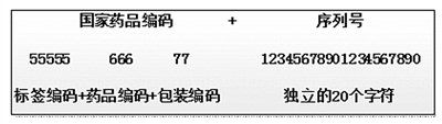 2011年2月15日,美国FDA召开了关于处方药跟踪与追溯系统的公众研讨会,对SNI的应用进行了初次介绍。SNI是一套序列化的国家药品编码(sNDC)。sNDC由美国《联邦规章典集》第21篇207部分阐述的“国家药品编码”(NDC)组成,是一组独有的序列号,由标签编码、药品编码、包装编码共10个字符组成。NDC由每个独立包装的生产商或分装商生成,可保证一物一码,并以条形码的形式印刷在药品包装上,而序列号应为数字或字母(包括数字和/或字母),不超过20个字符(字母和/或数字)。sNDC示例如图1所示。