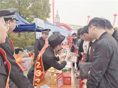 “12331——助力健康中国梦,食药安全伴你行”主题宣传活动中,江西省食品药品监管局工作人员在江西农业大学向学生们介绍辨别真假保健食品的方法。 本报记者 谭彩丹 摄