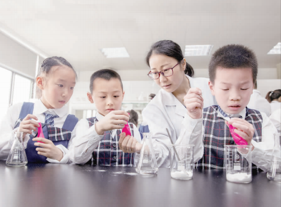 图为活动中,工作人员在指导小学生做实验/摄影报道 孙建新 姚文帅