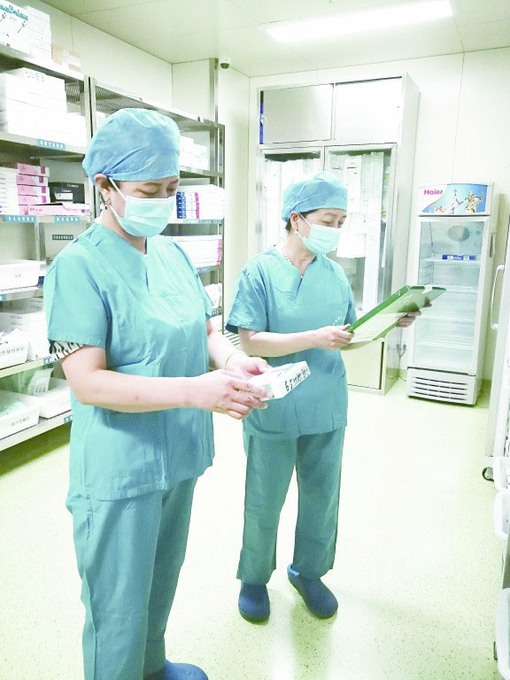 图为督查组在兴安盟人民医院的高值耗材库进行检查。