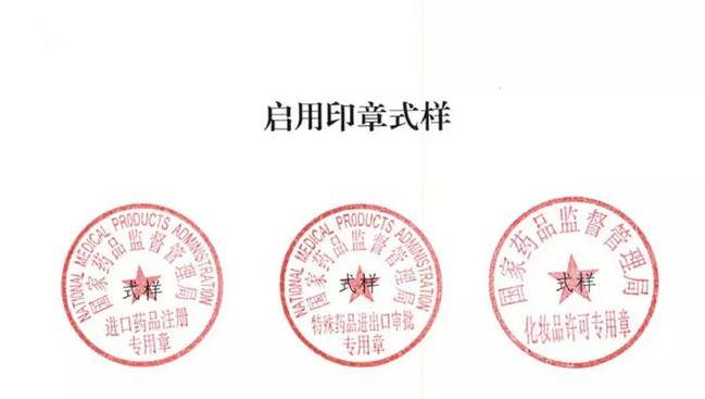 日前,国家药监局发布公告,根据国家药监局机构改革工作进展,自2018年9月1日起,启用“国家药品监督管理局进口药品注册专用章”“国家药品监督管理局特殊药品进出口审批专用章”“国家药品监督管理局化妆品许可专用章”,原国家食品药品监督管理总局相应印章同时废止。