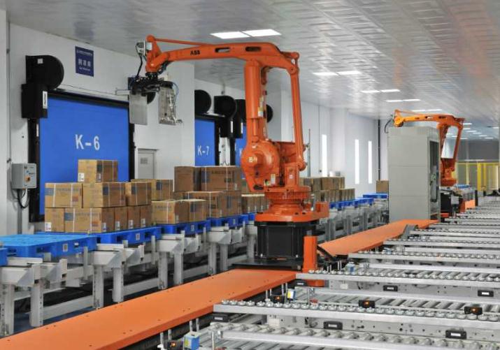华药华民公司自动化立体仓库机器人正在摆放药物。