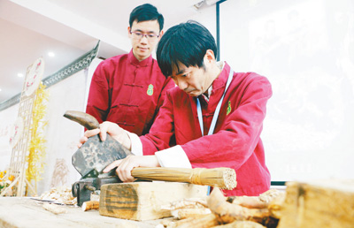 在浙江省桐庐县近日举办的首届桐君“定三品”中药饮片展会上,制药技师展示中药古法炮制技艺。人民视觉