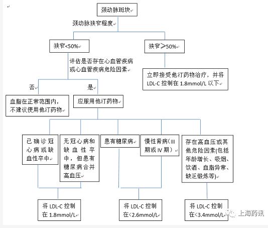 这不能一概而论,治疗应结合患者的颈动脉狭窄程度、是否存在心血管疾病或心血管疾病危险因素、及低密度脂蛋白胆固醇(LDL-C)水平综合考虑。