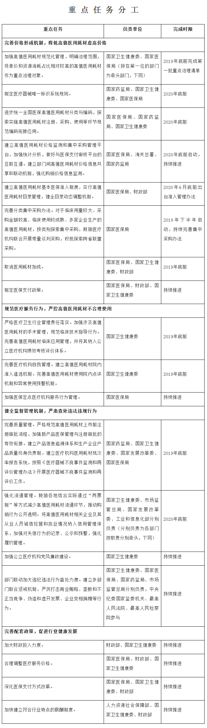 (十八)明确责任,分工协同。各地各有关部门要切实增强改革定力,明确责任分工,密切协同配合,确保治理高值医用耗材各项改革措施落地生效。鼓励地方结合实际,重点围绕分类集中采购、强化流通管理、规范公立医疗机构服务等方面,探索有效做法和模式,及时总结推广。