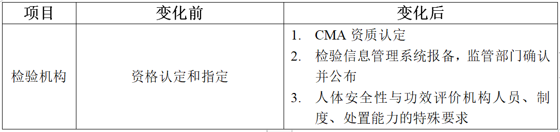 原由国家药品监管部门对化妆品行政许可检验机构的资格进行认定,现改为取得化妆品领域的检验检测机构资质认定(CMA),且取得资质认定的能力范围能够满足化妆品注册和备案检验工作需要,便可以承担检测项目。