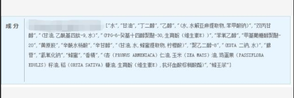 这些养肤油产品是不是真的有这么神奇,还是得从它们的成分开始研究。笔者选择了三款比较有代表性的产品,在国家药监局网站找到了成分表: