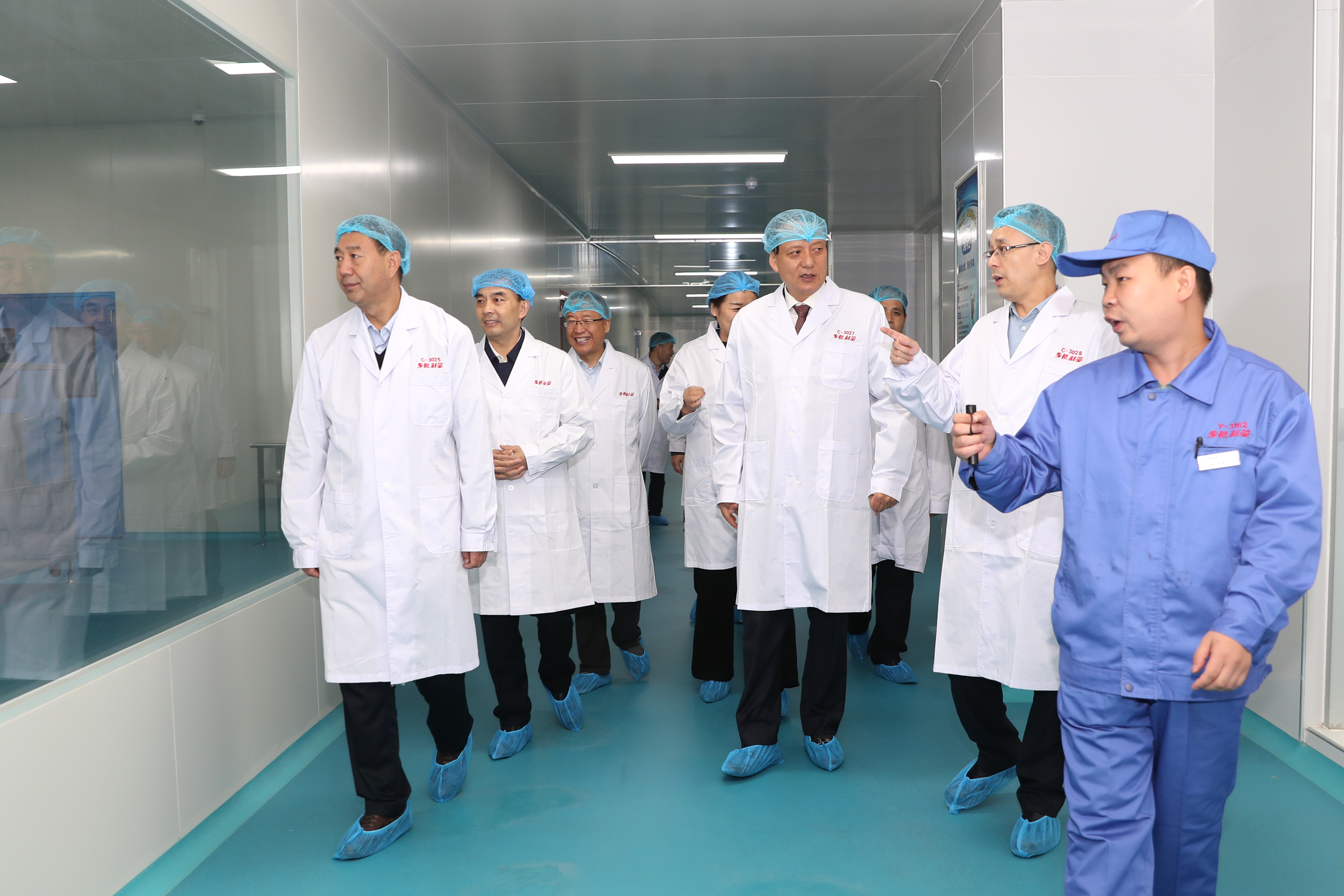 图为药品监管部门代表观摩杨凌步长制药有限公司医药现代化生产基地。(贺一辰 摄)