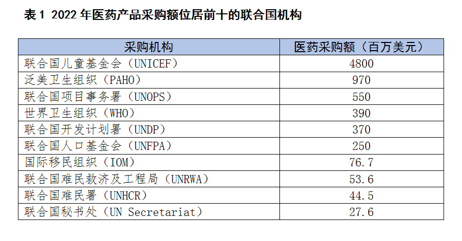 从采购机构来看,联合国儿童基金会(UNICEF)一直是健康产品最大的采购机构,2022年采购额达48亿美元;泛美卫生组织(PAHO)以9.7亿美元位居第二;联合国项目事务署(UNOPS)以5.5亿美元位列第三。