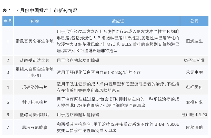 7月份中美欧批准上市新药盘点 我国自主研发的六款新药在全球范围内首次获批上市