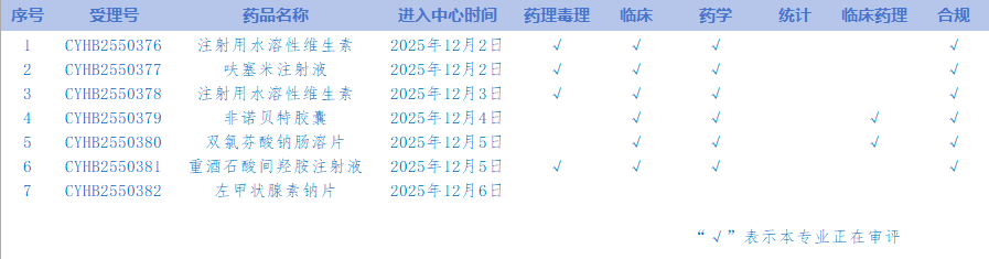 7.CDE网站公示7个仿制药一致性评价任务(详见表),涉及注射用水溶性维生素等品种。